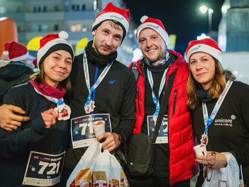 Umicore promotes a healthy and active lifestyle amongst its employees and participates in local sports initiatives such as the Santa Claus Night Run in Nysa where we are both runners and a sponsor. Every year the number of Umicore runners increases steadily, and to celebrate this, we support all participants with lively cheering and a nice cup of hot Belgian chocolate.